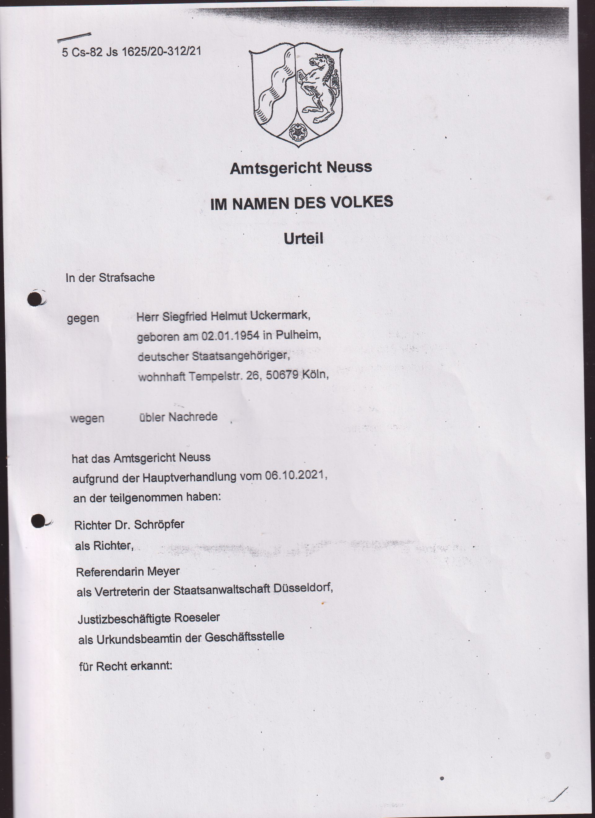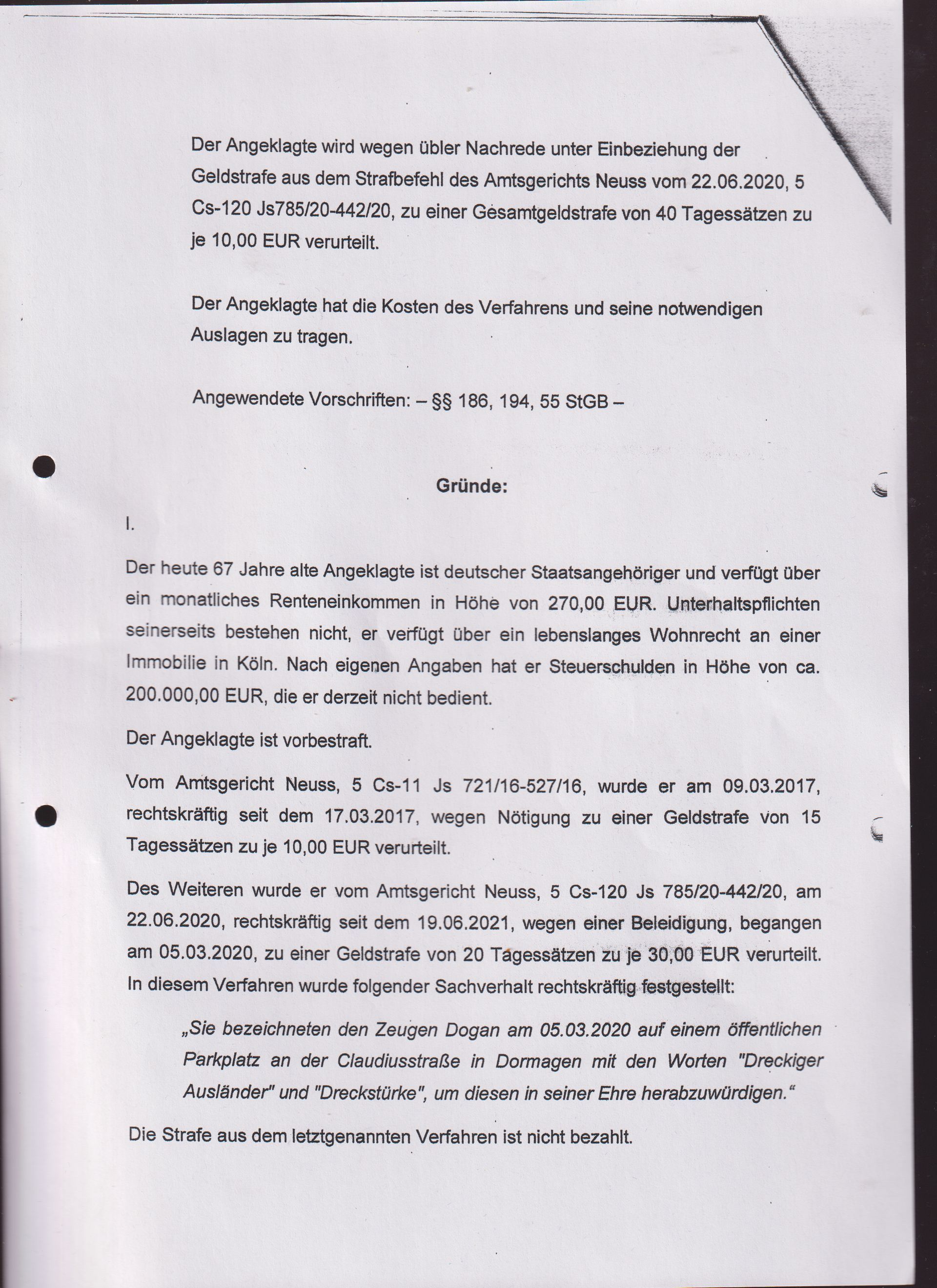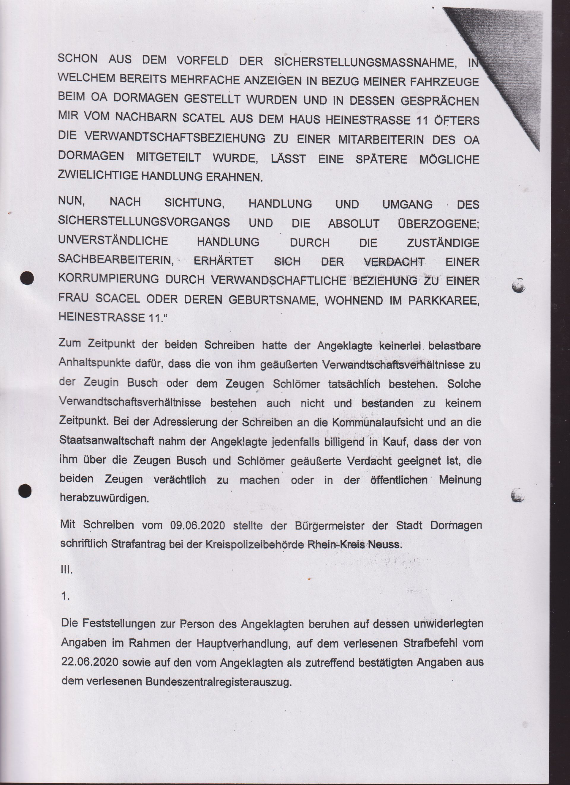 GESPROCHEN UND WER ANDERS ALS DIE STAATSANWALTSCHAFT KANN DIESEM NACHGEHEN. MIR WURDE VOM BÜRGERMEISTER DES ORTES DORMAGEN, E. L. BESTÄTIGT, DASS ES SICH AUSSCHLIESSLICH UM EINE VERDACHTSÄUSSERUNG HANDELT, ABER DER BÜRGERMEISTER